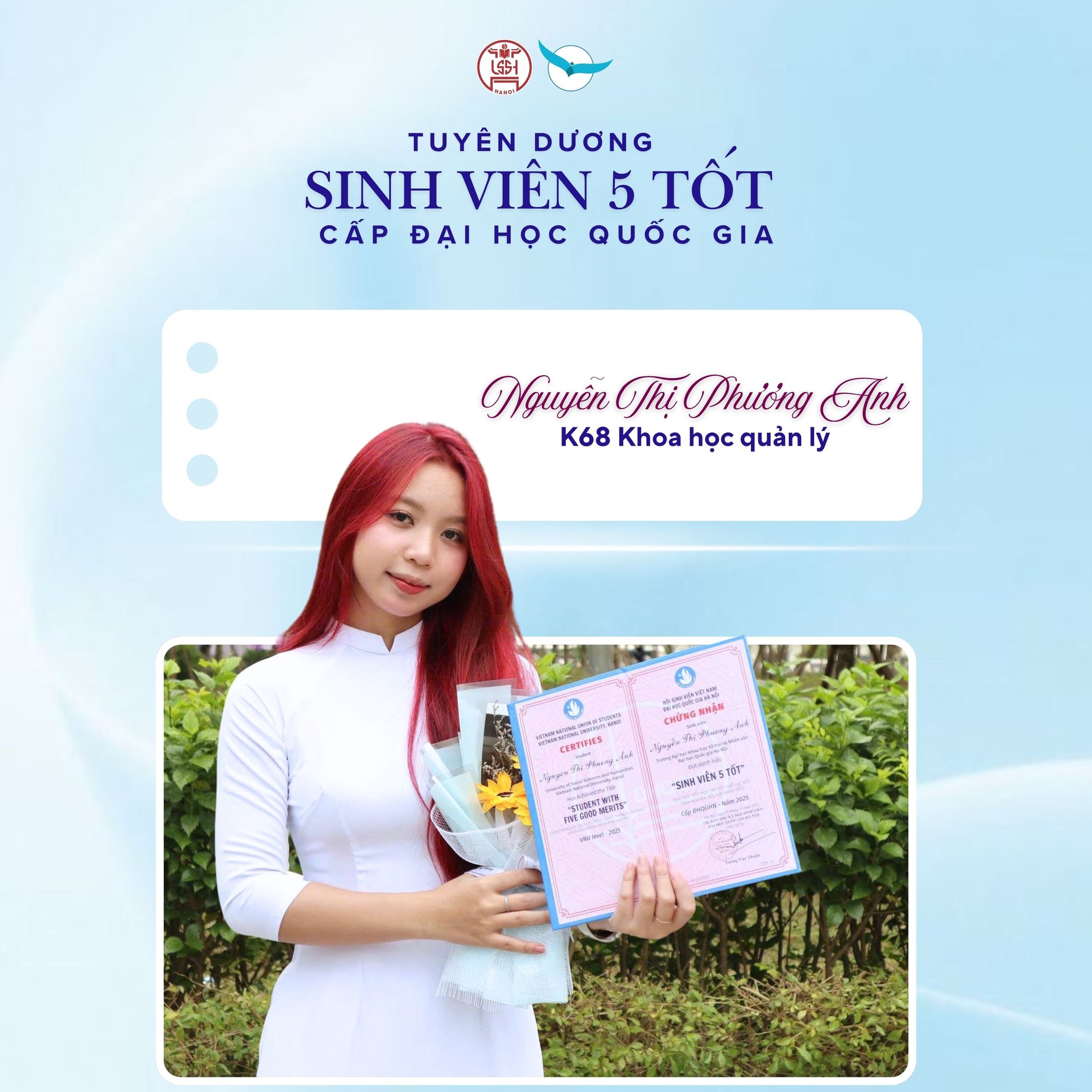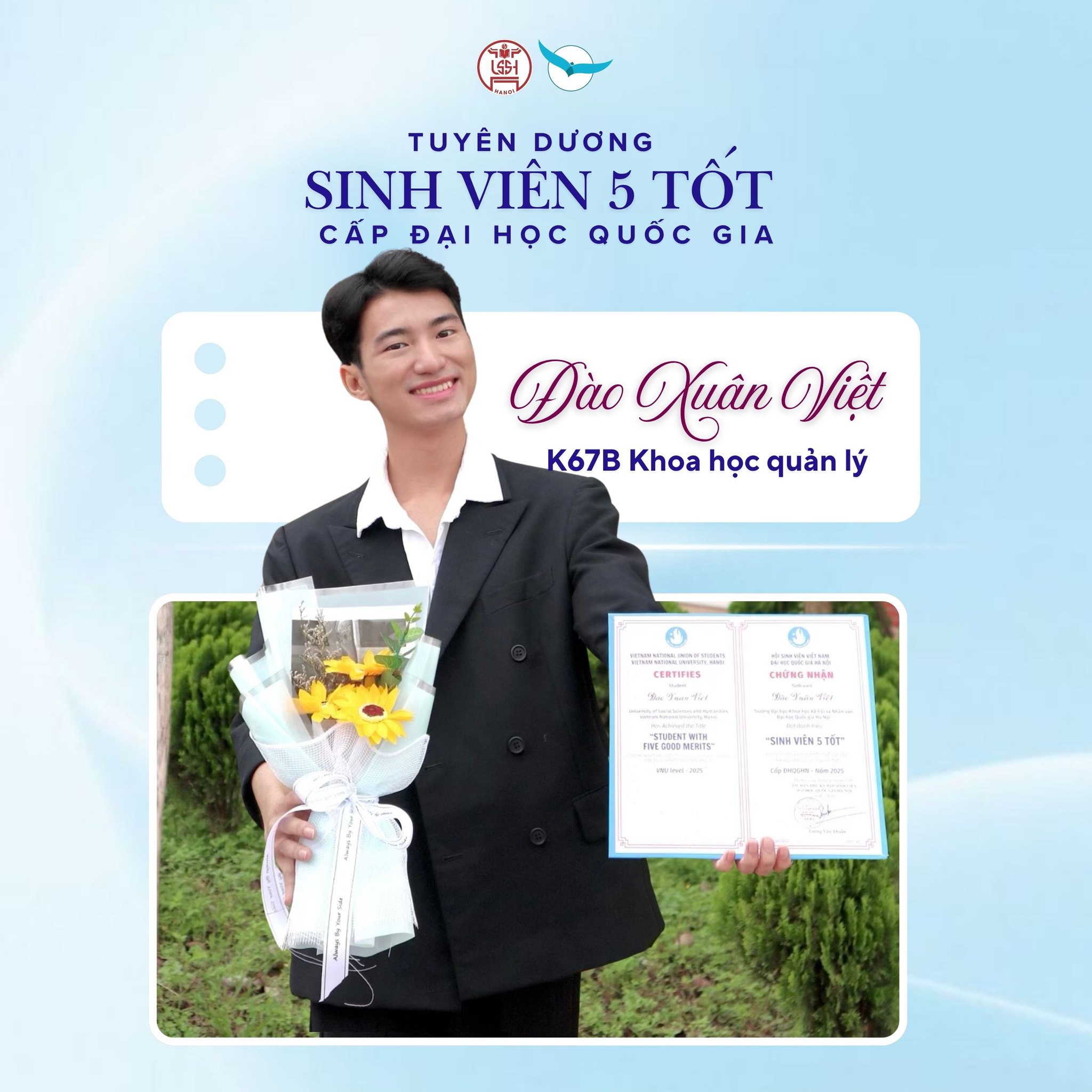 TUYÊN DƯƠNG 06 SINH VIÊN KHOA KHOA HỌC QUẢN LÝ ĐẠT DANH HIỆU "SINH VIÊN 5 TỐT" CẤP ĐẠI HỌC QUỐC GIA HÀ NỘI NĂM HỌC 2023 - 2024